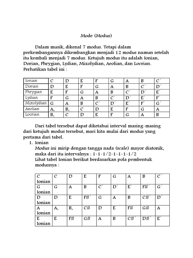 Tangga Nada Dorian : Ingin Bisa Melodi Harus Tahu Major Modes Dulu / Ionian merupakan istilah nada pertama atau nada major yang dipakai di dalam tangga nada, yaitu modes.