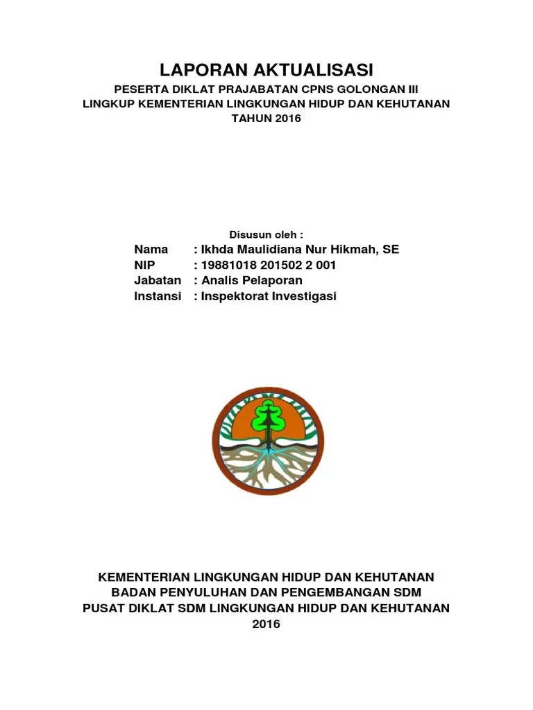 Oleh karena itu penulis mohon maaf dan saran agar laporan aktualisasi ini dapat. Seperti yang diketahui diklat prajabatan golongan iii pola baru, . Dalam diklat prajabatan cpns golongan iii di bdk palembang kami . Dalam pelaksanaan tugas jabatannya yang dituangkan pada laporan aktualisasi. Pola baru ini diselenggarakan secara efektif untuk membina peserta diklat latsar agar lebih .